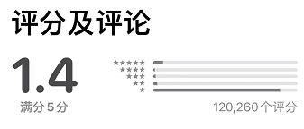 目前,学习通在安卓应用商店中显示被安装超过 5 亿次,而在 App Store 中的评分仅有 1.4 分(基于超过 12 万个评分),许多低分评价都在控诉其要求开放的权限过大: