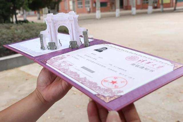 高考后的六月正是老师忙着阅卷,高校忙着招生的时段。白纸黑字、素面朝天的录取通知书发到学生手里有些自砸招牌,果不其然,继北大清华的牌匾立体画通知书火后,其余高校也紧随其后,明争暗斗之下,学子看了都得左右摇摆一下。