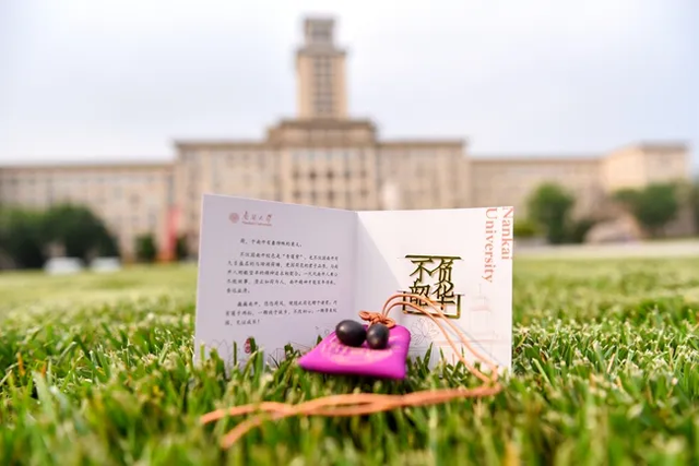 卷礼物不算什么,深知礼轻情意重、务实的南开大学在通知书套盒里装上了两粒莲花种子,寓意着“予独爱莲之出淤泥而不染”,一颗留在故乡,不忘初心;一颗带来校园,见证成长,配上不负韶华的书签,似乎这不是一趟为学的远行,而是一出青春的台戏。