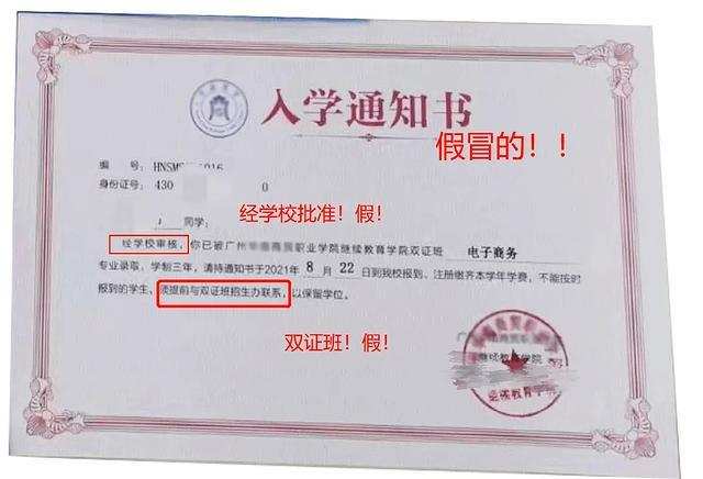 于是野鸡大学利用这些信息广撒网,向所有填写信息的考生寄去自己的录取通知书,为的是让考生交钱报名,从而达到骗钱的目的。